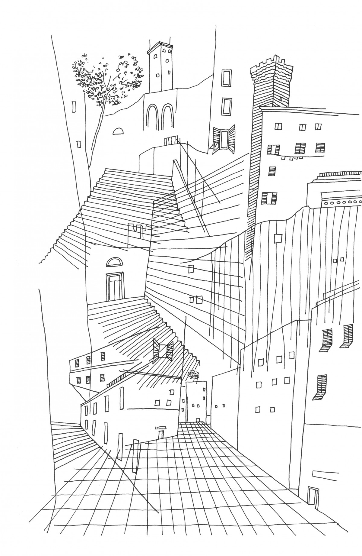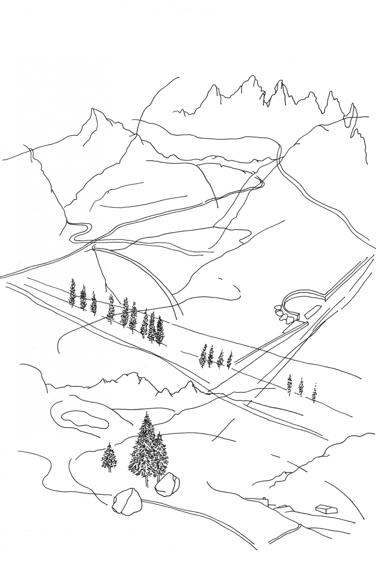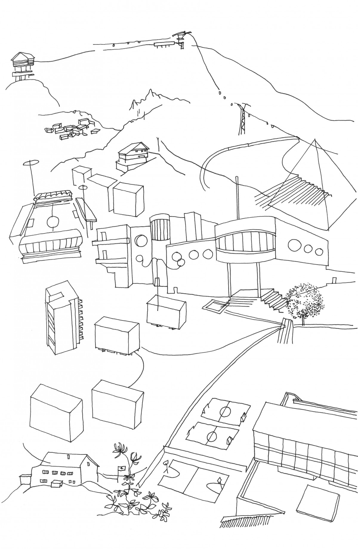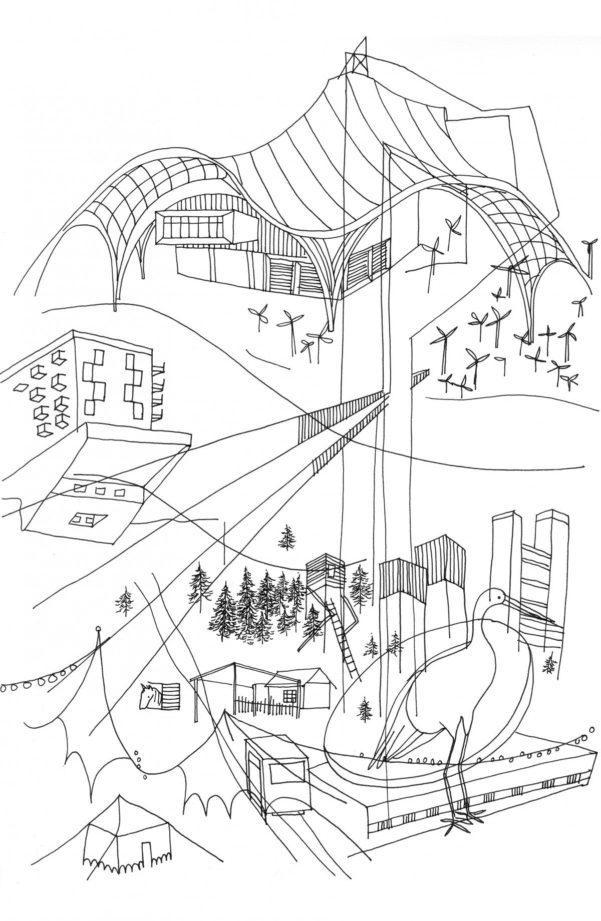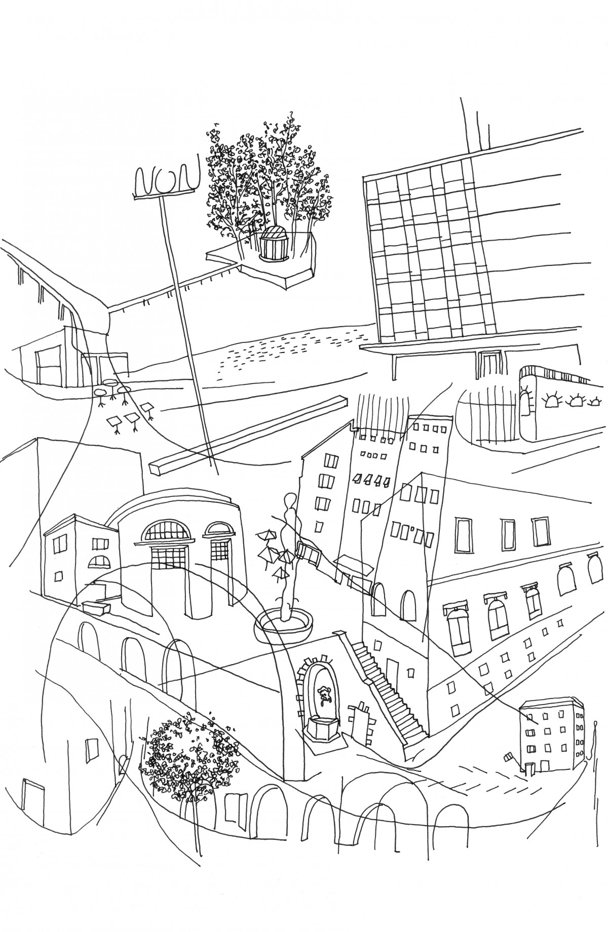 Une longue liste de phrases évoquant des lieux familiers, traversés ou connu a servi de point de départ au travail de dessin. Les représentations d'images mentales des espaces convoqués de la sorte se sont développées à partir de titres suggestifs, treize au total. Lieux qui s'entrecroisent et se superposent ou encore inventaires d'espaces en attente de réappropriation, ce qui permet de créer ainsi de nouvelles histoires, fragmentaires, ouvertes, suggestives.