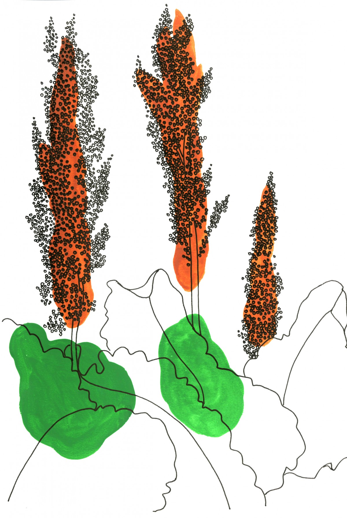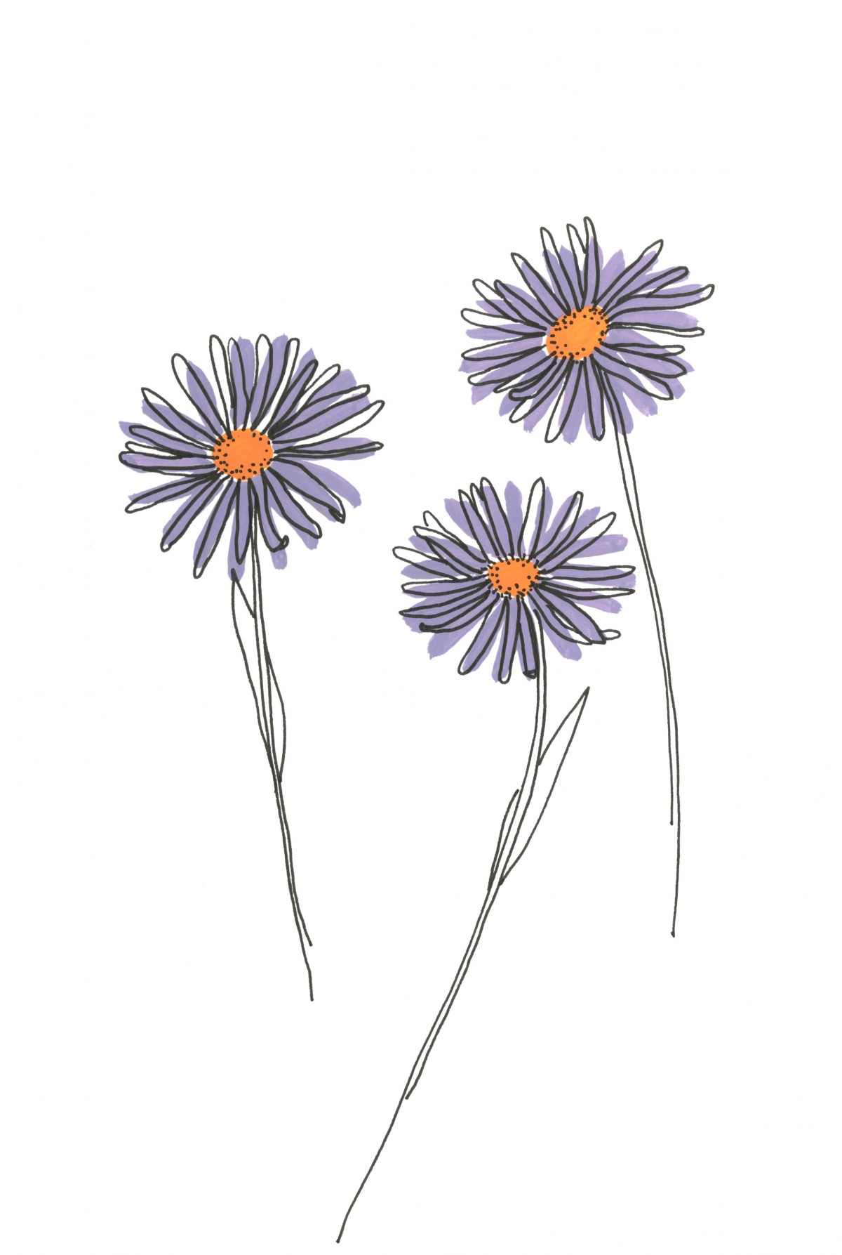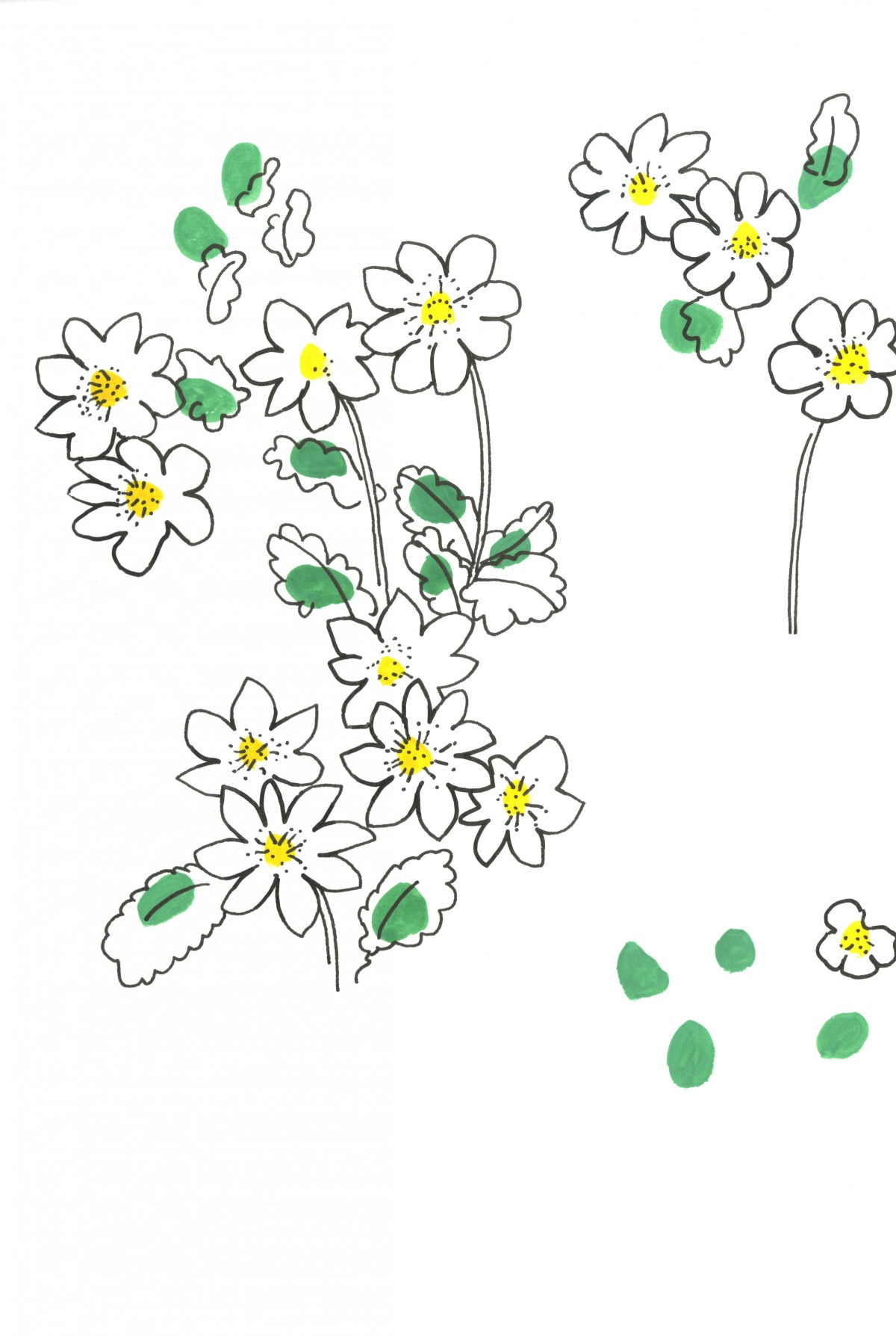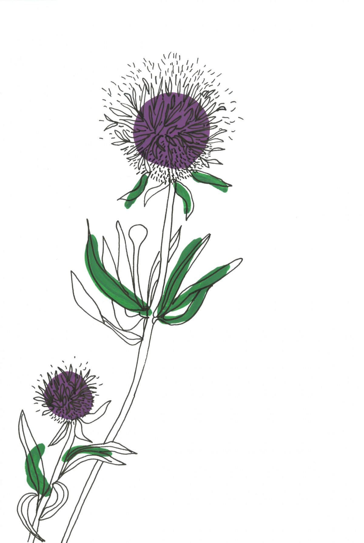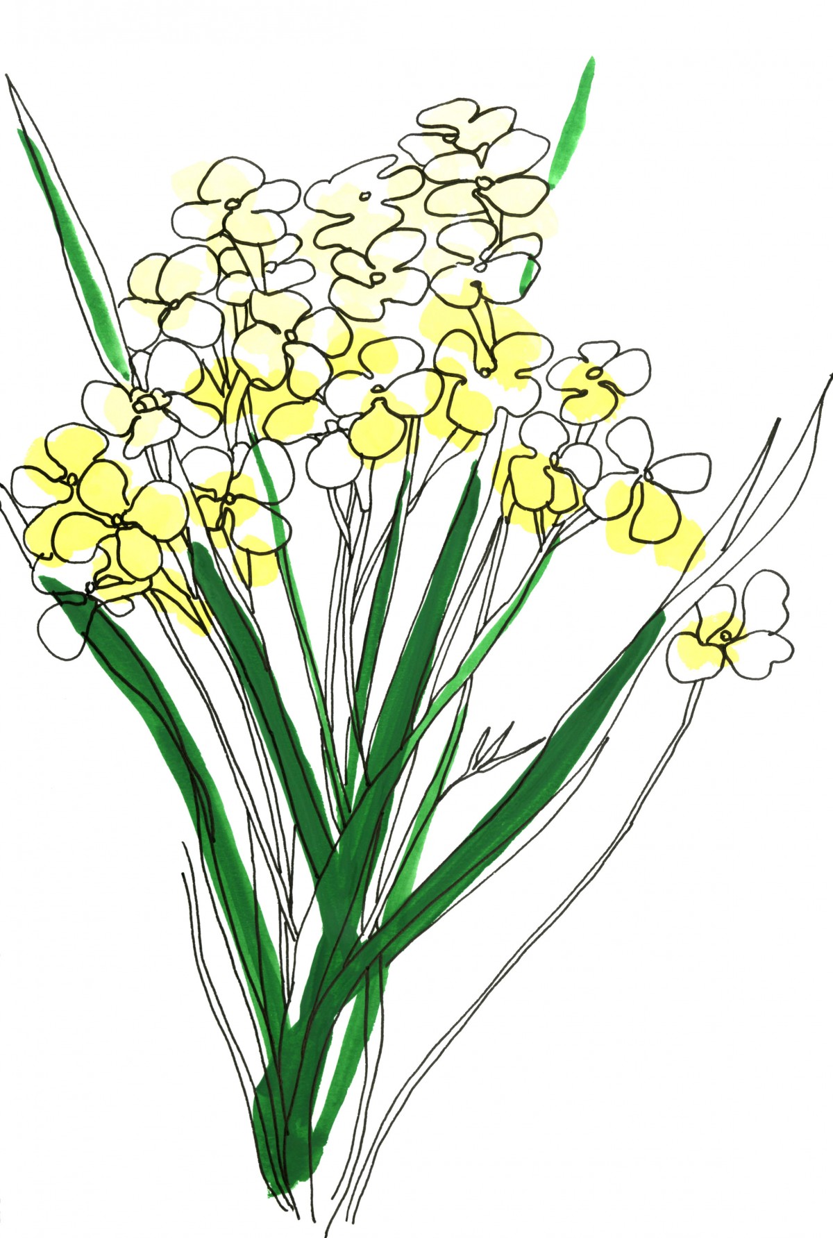 Les dessins de fleurs sont comme une sorte d’herbier surprenant débuté lors d’une résidence artistique à Sion en 2015. Ce travail s’inscrit dans les liens crées entre les randonnées en nature et le dessin. Les fleurs sont photographiées dans leur milieu naturel, puis à partir de ces images, une recherche sur la couleur des fleurs s’effectue comme point de départ. A l’aquarelle, une ou deux nuances de la plante sont déposées sur le papier. Le dessin à la ligne s’inscrit ensuite directement mettant en évidence l’aspect graphique des plantes.Des décalages entre les surfaces colorées et les lignes à l’encre de Chine se produisent donnant à cet «herbier» un caractère singulier.