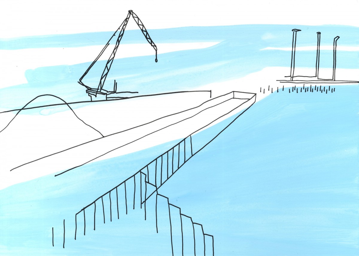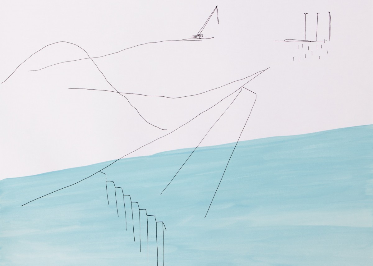 La répétition d’un même sujet à travers différents formats participe conjointement d’un processus de travail et d’une relation au temps ; un signe qui se dégage des dessins. La nature, presque vierge, laisse parfois découvrir l’action de l’homme dans l’environnement : barrages, lacs artificiels, chemins qui sillonnent le paysage.