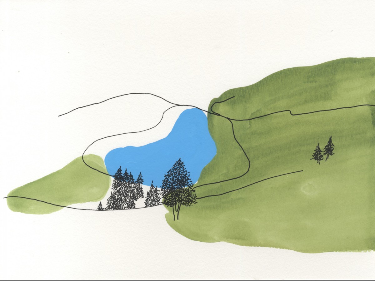 La représentation du paysage est abordée comme relation au monde qui m’entoure en transposant la réalité d’une expérience par le dessin. Les montagnes sont un sujet que je privilégie dans mon travail car elles évoquent non seulement un paysage précis, observé et contemplé mais aussi une idée plus vaste de paysage.