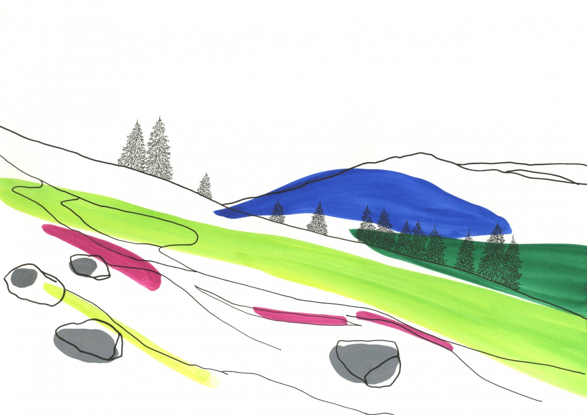 Choisir une destination · S’échapper de la ville · Partir avec la bonne «altitude» · S’imaginer au sommet · Prévoir la distance · S’équiper d’une carte · S’embarrasser d’un sac trop lourd · Rouler sans perdre patience · Quitter les routes fréquentées · Arriver à destination · Commencer son cheminement · Mettre un pied devant l’autre · Sentir son corps · Rythmer sa respiration · Marcher et ne plus y penser · Progresser et penser autrement · Libérer ses pensées · Guetter les oiseaux · Regarder à travers les branchages · Percevoir le chant du casse-noix · Sourire et se détendre · Relâcher les muscles de son visage · Cueillir une fleur du regard · Reconnaître une grande astrance · Repartir en avant · Tomber sur une vipère pléiade · Frémir un court instant · Jouir d’une rencontre inattendue · Prendre une photo floue · Avancer à nouveau · Se retourner intuitivement · Découvrir une vaste étendue · Contempler les montagnes et le ciel · Exercer ses yeux · Suivre la ligne de crête · Admirer le paysage · Grimper quelques mètres · S’accrocher aux rochers · Caresser les pierres · Introduire sa main dans une faille · Recevoir de l’énergie · Atteindre le sommet · S’immobiliser en regardant le vide · Écouter le bruit du vent · Manger un œuf un peu trop dur · S’interdire de partager son casse-croûte avec un chocard · Voir avec son corps · Déplacer son attention · Serpenter dans l’espace · Rassembler les sentiments du proche et du lointain · Décaler le regard · Penser comme une montagne · Trouver des lignes harmonieuses · Repérer des points de vue · Faire partie · Se souvenir des moments partagés · Repenser à toutes les autres fois · Retracer des lignes · Rendre compte d’une expérience · Interpréter le monde qui nous entoure · Évoquer des rapports à l’espace · Dessiner librement des perceptions · Oublier les limites ·