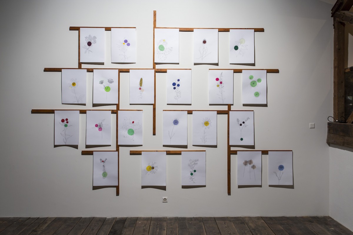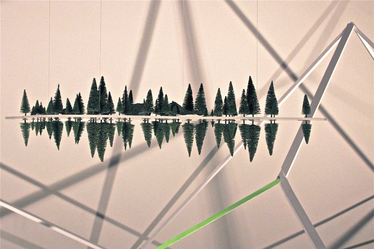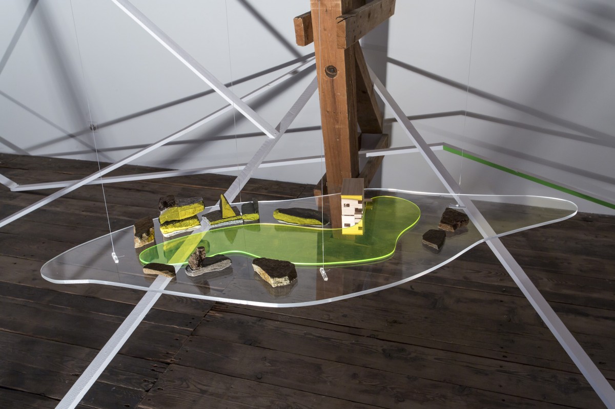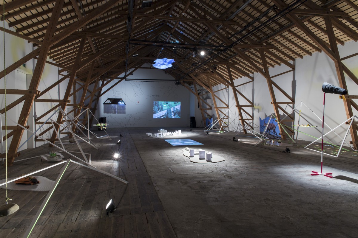 « Le point de départ est une résidence de trois mois à la Ferme-Asile de Sion. Le résultat est l’investissement de la grange, un vaste espace d’exposition de 800m2. Le duo d’artistes installé à Genève a profité de l’invitation estivale pour sillonner le Valais en voiture, en train, en car postal, à vélo et à pied, pour observer, filmer, dessiner et collecter des objets. Ces emprunts tirés de la réalité apparaissent dans l’installation comme des ancrages vécu. Cailloux, coquilles d’escargots, fragments de briques, plumes d’oiseaux, mais aussi brosses à dents, planche de skate, raquette de badminton, sac à dos, cordes d’alpinismes, le plus souvent détournés avec humour, servent de contrepoint au ressenti de leur expérience. L’expression des souvenirs d’une émotion, que ce soit lors d’échange avec les habitants, des impressions visuelles comme le va-et-vient du regard qui passe des hauteurs montagneuses à la plaine du Rhône, l’observation des paysages, l’écoute des sons, la contemplation de la douceur du mouvement de l’eau, le passage soudain et bruyant d’un avion militaire, est ce qui distingue les deux artistes qui travaillent régulièrement ensemble depuis 2011.
