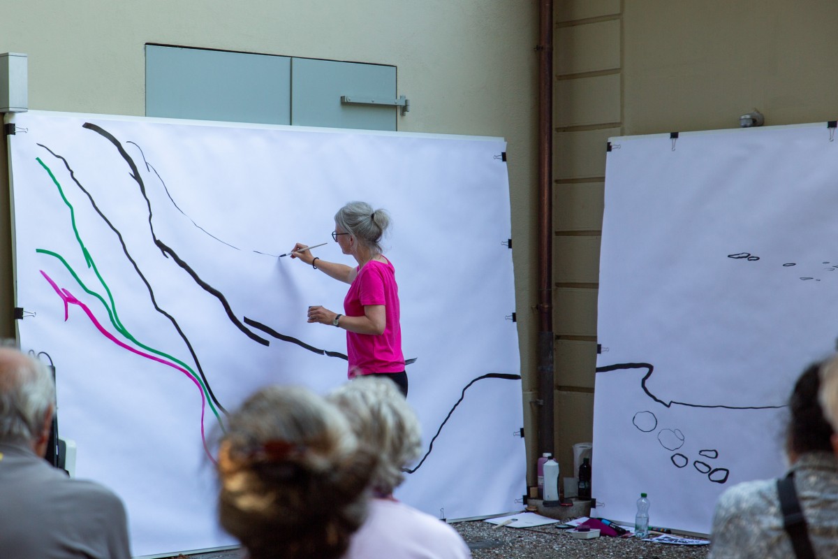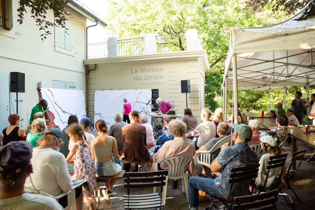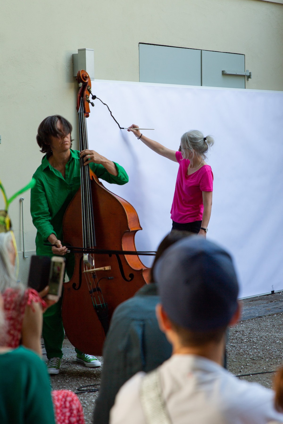 Rêver comme une pierre Une collaboration de Noëlle Reymond, contrebasse, Pascale Favre, dessin, Thomas Schunke, lithophone et voix